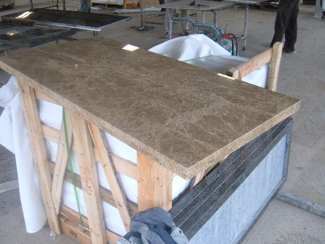 Ease polished Light Emperador slab. We can supply you best quality and affordable price that can well finish your project. |