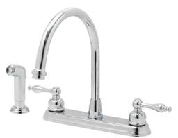 8" Two handle kitchen faucet, brass housed ceramic disc cartridge, with side spray, |