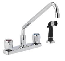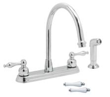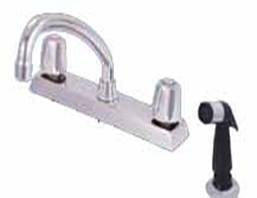 8" two handle kitchen faucet, w/compression cartridge, metal round handle, w/hose spray out of deck, chrome finish |