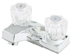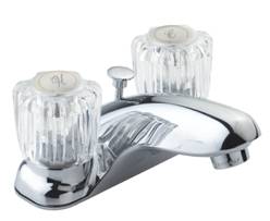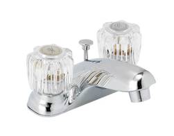 4" TWO HANDLE LAV. FAUCET, W/WASHERLESS CARTRIDGE, ACRYLIC ROUND HANDLE, W/BRASS POP-UP, CHROME FINISH |