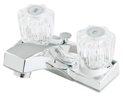 4" TWO HANDL LAVATORY FAUCET, TWO ARYLIC ROUND HANDLES,WASHERLESS CARTRIDGE,LESS POP-UP,CHROME |