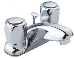4" TWO HANDLE LAV. FAUCET, TUBULAR BODY W/PLUS ZINC PLATE, W/WASHERLESS CARTRIDGE, METAL ROUND HANDLE, W/BRASS POP-UP, CHROME FINISH |
