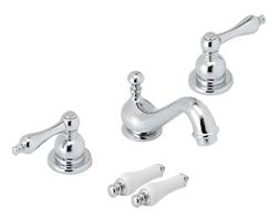 4"-12" Mini Wide-spread lavatory faucet, metal lever handles, brass pop-up, brass housed ceramic disc cartridge, chrome finish |