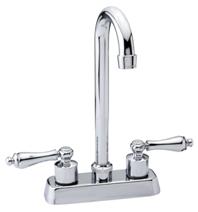 NSF certified 4” two handle bar faucet, 8-1/2" high rise spout, acrylic handle, washerless, chrome finish |