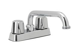 NSF certified 4” two handle laundry faucet, with thread adapter, acrylic handle, washerless, chrome finish. |